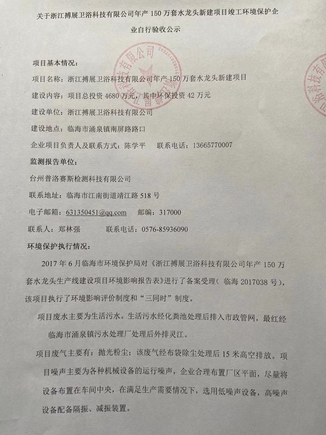 新建项目竣工环境保护企业自行验收公示